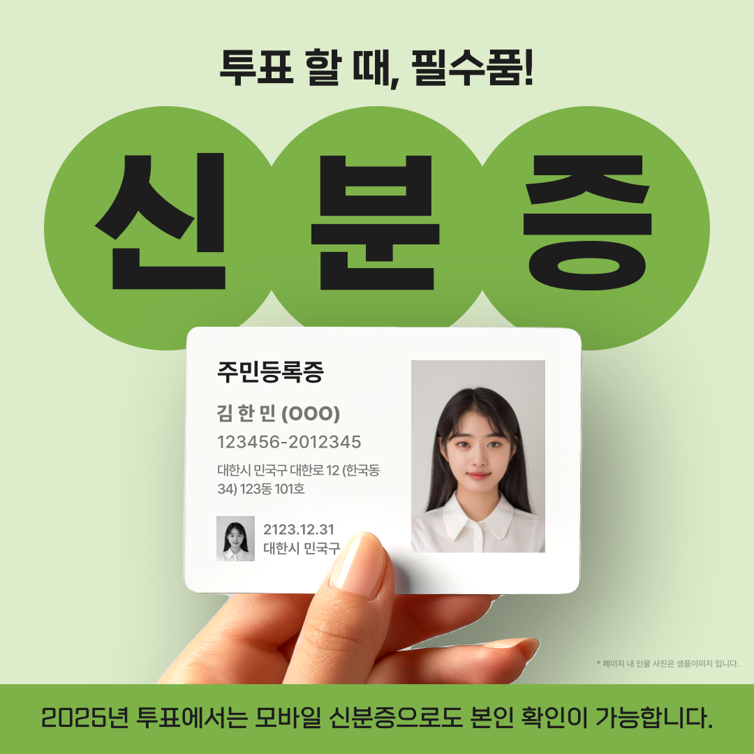 사전투표는 정해진 선거일 전에 미리 투표할 수 있도록 마련된 제도다. 평일 출근이나 주말 일정으로 본투표일에 시간을 내기 어려운 유권자들을 위해 사전투표는 금요일과 토요일, 이틀간 전국 어디서든 투표를 가능하게 만든다. 하지만 투표소에 간다고 해서 그냥 투표를 할 수는 없다. 신분증을 반드시 제시해야 한다. 이때 사용 가능한 신분증은 주민등록증, 운전면허증, 여권 등과 더불어 모바일 신분증도 포함된다.