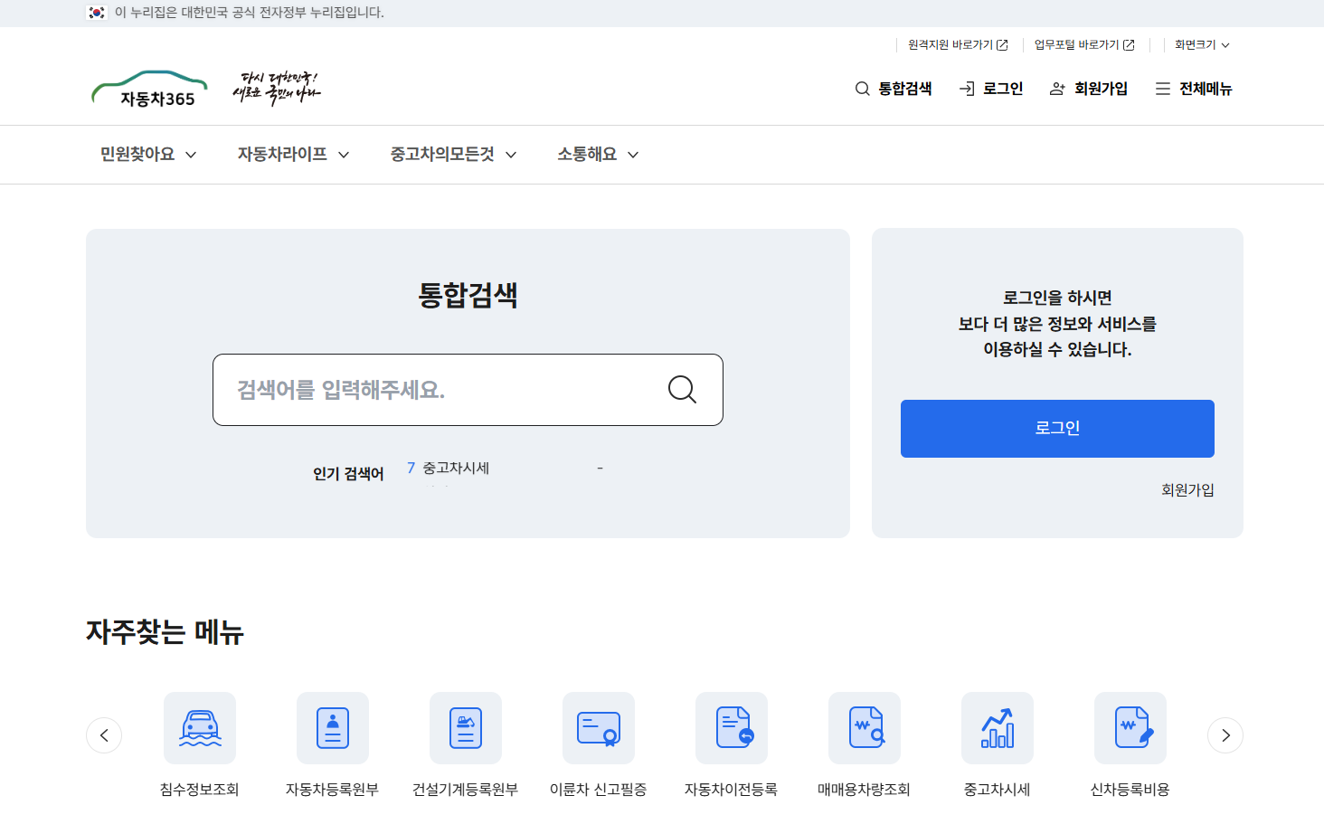 i. 자동차365를 통한 자동차생애주기별 콘텐츠 이용 ii. 자동차 등록비용 계산기를 통한 등록비용 확인 iii. 자동차에 관련된 다양한 정보 제공 iv. 본인 소유 차량에 대한 검사이력을 포함한 다