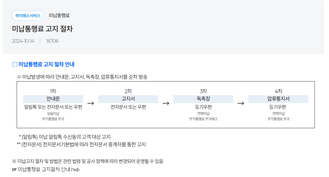 미납된 하이패스 통행료, 더 이상 찝찝하게 두지 마세요.