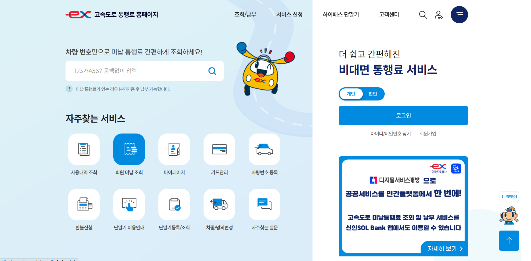 2. 고속도로 통행료 웹사이트 한 번에 조회하고 납부하기