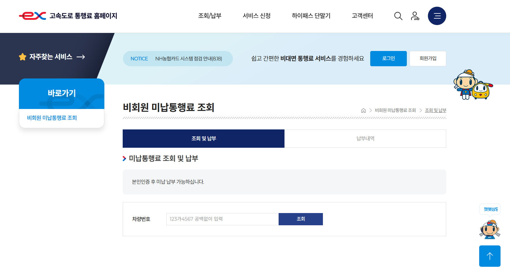 고속도로 통행료에서, 간단한 절차만으로 조회부터 납부까지 한 번에 해결할 수 있습니다.