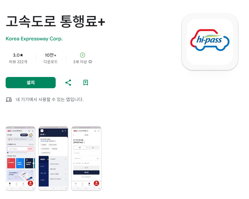 구글 플레이 스토어 또는 애플 앱스토어에서 고속도로 통행료를 검색하여 앱을 다운로드 및 설치합니다.