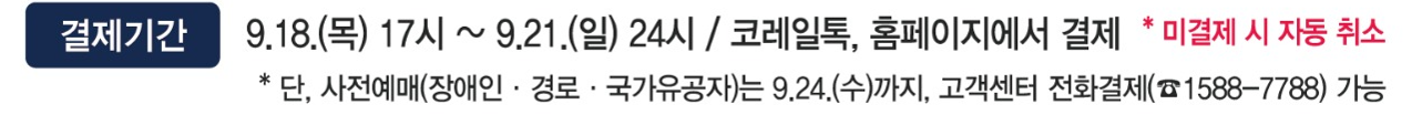 ● 우선예매 : 사회적 배려 대상 (장애인, 국가유공자, 경로 등)