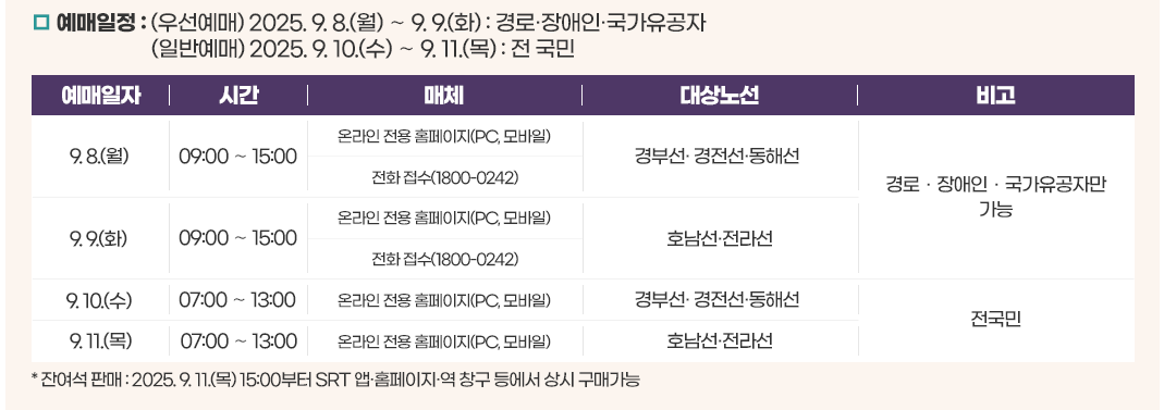 ■ 2025년 추석 SRT 예매 일정 및 방법