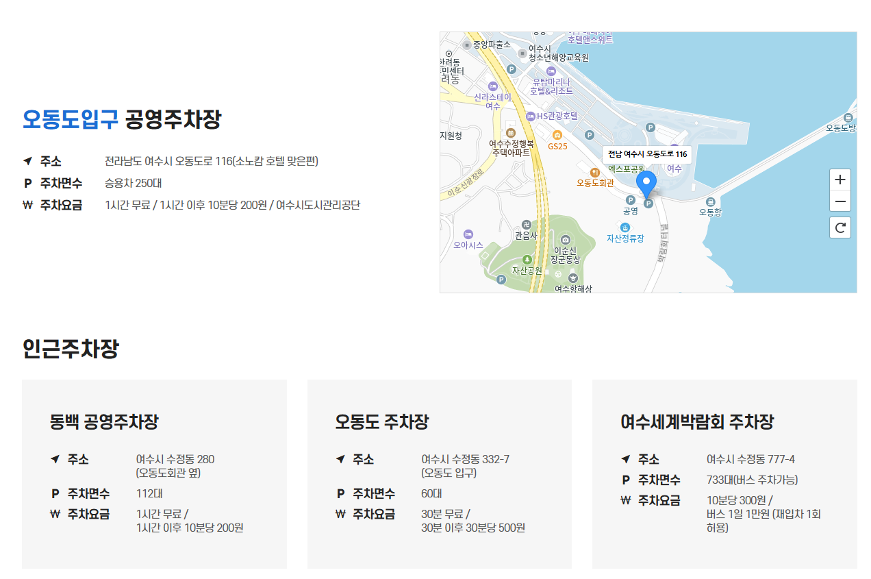 이곳은 해양공원 주차장이나 자산공원 주차장을 이용해야 하며, 별도의 주차 요금이 발생할 수 있습니다. 주말 교통 체증을 피하고 싶다면 자산 정류장 쪽을 고려해 보는 것도 좋은 방법입니다.